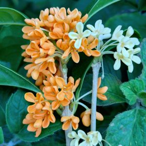 キンモクセイとギンモクセイ 2つとも開花して、庭から良い香りがしてます😊 ①キンモクセイとギンモクセイ比べてみました ③蝉の抜け殻発見