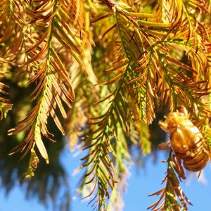 メタセコイア メタセコイアの黄葉 夏の名残のセミの抜け殻。 2022/1125pic