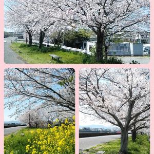 「咲き誇る桜🌸-⑦」 撮影📱2025.3.30 熊本市川尻町の 加勢川右岸堤防で撮影📱 桜🌸ソメイヨシノ 前回ベンチのみ撮影📱 した場所の芝生広場 再び撮影に行ったら 桜🌸が満開になってた😀 菜の花🌼も咲き誇り 素敵な雰囲気やったよ🎵