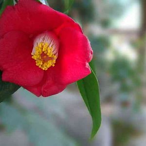 澄みきった空と椿の赤い花 緑の葉がそれぞれ際立っています🌹