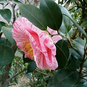 不如帰。ホトトギスって読みます。 中輪の椿。 椿園の入り口付近に咲いていました。