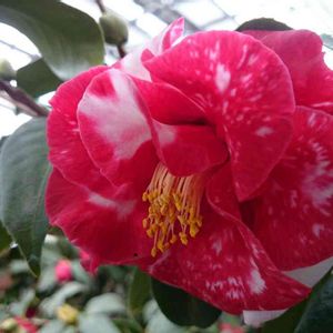 万代という名前の椿。 世界の椿館 碁石の近く、 椿園に行って撮影しました。 屋外の椿も咲き始めていましたよ。