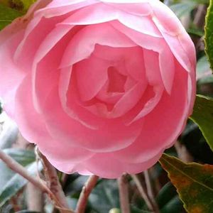椿 花仙山「かせんざん」 素材の樹ですが、良い所に花が咲きました。薄らと朱鷺色がかっていて、とてもきれいです。