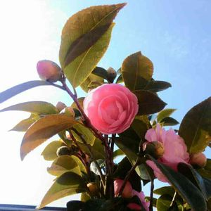 お日様、キラキラ 風に、そよそよと─ 椿が 輝いて、見えた!