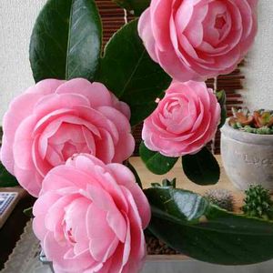 実家から もらってきた椿 🌼 バラの花のような椿 毎年 咲くのが楽しみです (*^^*)