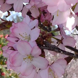 〈 バラ科の樹木 〉① ⬅️⚫︎ハナカイドウ 耐寒性落葉木 新緑が目立ち始める頃 枝を埋めるようにしてピンクの 鮮やかな花を咲かせます❣️ ➡️⚫︎サクラ 春の風物詩となっている 代表的な花です❣️ 観賞するだけでなく樹木は 保存性があり 家具や建築等の 材料になります。 花や葉は 塩漬けされ和菓子の 材料として活用されます ◎ 半開状で茎に沿って垂れるように 花を咲かせる事から スイシカイドウ(垂糸海棠)とも よばれます。 昨日 行った温泉の桜です🌸 咲き始めると あちこちで咲き 誇っています。 散らない内にお花見をしたいです ⚠️地震の影響はありませんか 今後もご注意下さい。