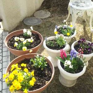 ☆植え替え完了☆ 今年の鉢植え✨ 入学式には、もう少し株も育つかな?😁