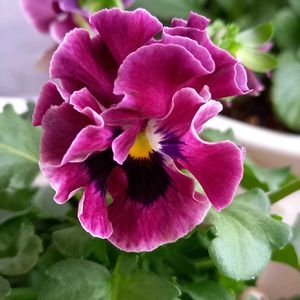 💜ビオラきまぐれロージー 1株で咲きはじめから次第に色が変わっていくビオラです😊 前は白からピンクだったけど、今は紫、濃い紫となってます。気まぐれ( -_・)? 春が楽しみ~😆待ち遠しいです🤭 一歳半過ぎの孫ちゃん👦が良く来るので、今シーズンはお部屋にお花の鉢は置けないと諦めてました。この頃は少しずつ言葉もでて、「はっぱー」とか咲いてるビオラを見て「はなー」とか言って可愛い(´・∀・) 思いのほかお花を手で掴んだりしない良い子🤭なので、去年ほどではないけどビオラのお一人様の鉢が並んでます🤗 パンビオと孫の笑顔に癒されてます🥰