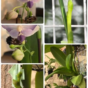おはようございます🌻♪¨̮⑅*⋆。˚✩.*・゚🌻 🏷金曜日の蕾たちに参加しまーす 上段 右 胡蝶蘭 ブルーバード 左 胡蝶蘭 マイリトル チーカ 下段 右 シクラメン 原種 プルプラセンス 左 胡蝶蘭 原種 コルヌセルビ アルバ