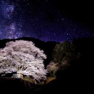 夕暮れ時、淡い光を浴びて浮かび上がる淡墨桜。 まるで幽玄の世界に迷い込んだかのような、息をのむ美しさでした