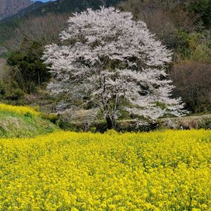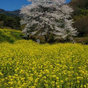 淡墨桜🌸(うすずみざくら) 日本三大桜🌸岐阜県尾谷の 淡墨桜で子孫だそう 満開の桜🌸と菜の花💛との コラボ素敵ですね🌸💛🌸💛🌸 秦野市蓑毛