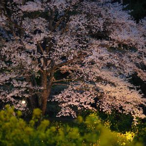 淡墨桜のライトアップされた時の写真です。 菜の花で前ボケの練習をしてみました🌻