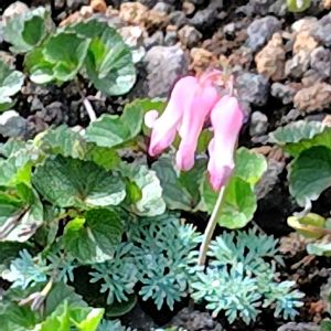 ①②コミヤマハンショウヅル 東北地方の高山に生えるつる性植物 葉の陰にひっそりと咲いている姿が 激写せずにはいられませんでした ③イワブクロ 火山系の山の岩場のそばに咲く 花冠が袋状になっているのでイワブクロ 真ん中に写っている花の中を拡大して見てみてください 4本ある雄しべが、ヤギの角みたいにクルクルしていて面白い 毎日、日差しが強烈で肌から火がふきそうです🥵 シミが… 😵 明日もがんばりましょ〜🍚