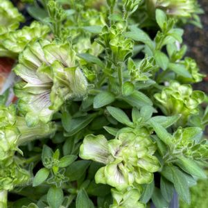 ペチュニア ラ・リュミエール クレプスキュール💕 切り戻してもすぐにモリモリになります❣️ ジュリエットブラックと また鉢から溢れてます🤣❤️🥰 でも花がカモフラ色で わかりづらい〜…🥹