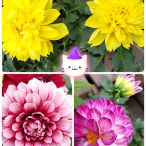 今日の花🪴ダリア達〜 🌿 Yellow&ピンク~🩷 ✨黄色いダリアの花言葉は「優美」「栄華」 💛黄色には幸運をイメージすることから、これらの花言葉がついたらしい🤗💕 🖼3枚投稿させて下さいね🙏🙇🏻♀️
