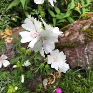 ムスクマロウ あちこちで沢山さいています 花びらがハートみたいで 可憐ですね💗😊