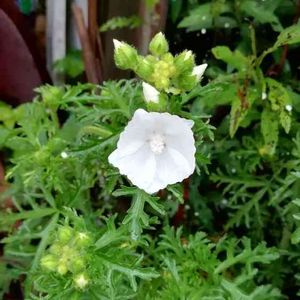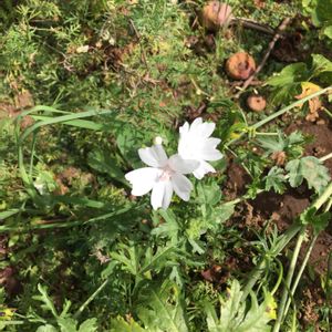 この花に出会って以来、私にとって白い花と言えばこの花、それどころか白い何かと言えばこの花になってしまった。しかし、名前を覚えていない。名前を教えて貰ったときの投稿を見返す。ムスクマロウというらしい。今度は忘れないだろうか。
