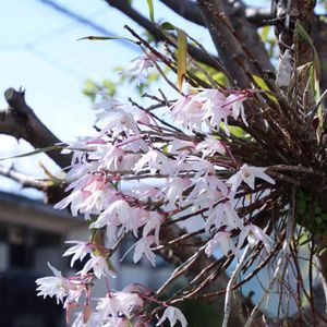 ピンクはキンギアナム 白はセッコク 手入れをしていないのでボサボサだけど咲いてくれています。