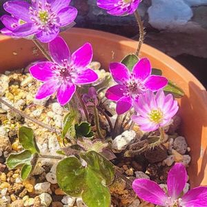 こんにちは☀️ 雪割草 ミスミ草 今朝はお花が目覚めたはかり 日中は暖かくなったので可愛く咲いているかも😃