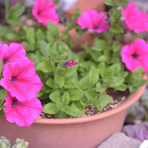 サフィニア、花数、もっと増えるかな? 追肥、しなくちゃ
