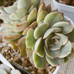 植え替え中 葉数がふえて可愛かったけど、葉挿し用にもぎってサイズ整えました。