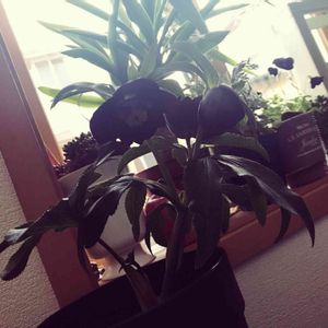 クリスマスローズ オリエンタリス ウィンターシンフォニー マットなブラックのダブル🖤 固まっちゃった? 何日もこのままだけど ほんの少しずつ開いてるのかな😊