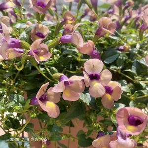 🌼お花便り 【#スーパートレニアカタリーナラムレーズン 】 🗓️定植2025-4/28 → 7/9 (10w2d) 🧭南西 🪴8号1株 ☀️4時間 🚿朝1回 🧴週1 ラムレーズンはこんもり沢山のお花が咲いてくれるのね😳どっさり咲いてくれるから、どっさり花がら摘みして、どっさり脇芽が〜の無敵ループ♾️もうどうしてあげて良いのやら🐒✨ 📝お花が沢山だからお水を欲しがります朝1回では足らない時は夕方もあげてます🚿が、なるべく頑張ってもらいます🤩 #pwスーパーアンバサダー2025 春で頂きました#スーパートレニアカタリーナ #スーパートレニア #トレニア