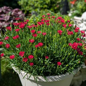 おはようございます☺️ 台風の接近で雨が降り始め、時折強まったり… 強風の予報はなかったのに、毎日思いのほか風が強くてびっくり🌀 アチャー…蒸れでダメージを受けてしまいました💦 PW ダイアンサス フルーリアムール ルージュ いい感じに咲いてくれていたのに…😭 📸 1️⃣2️⃣は蒸れを免れた元気な側 📸 3️⃣4️⃣はダメージ部分をカット✂️した後の様子です ルージュは育てやすくて、大好きなお花のひとつ。 どうか無事に回復してくれますように…🍀