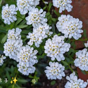 PW イベリス スノーボール つるバラの下に植えています🤍 無事冬越しして休まず咲いてますね🎶 明日は風雨が強まる予報ですね😨 今朝の庭パトは支柱を立てまくりました