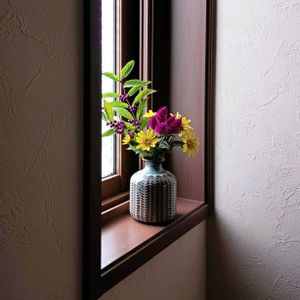 リユース?リサイクル? 前に生けた中からまだ生きてる花を小さい花器に移して小窓にお引っ越し。 お花があるだけでその場がパァっと明るくなりますね( ᐛ👐)💠