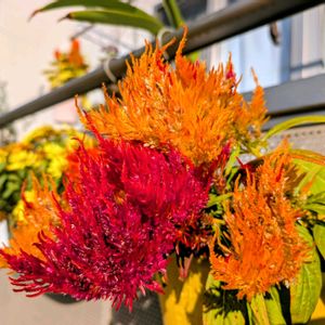 セロシア・ライオンハートキメラの髭 植え付けた時は小さかったセロシアもかなり大きくなりました。1株でこんなに違う色が出るの凄いですよね~