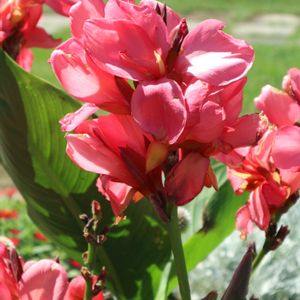 今日のお花 ❤️カンナ❤️ 大きな葉の中で咲く華やかな色。8月の公園の花壇で咲いているところを見ました。 そういえば、カンナの花を見たのは久しぶりでした😊