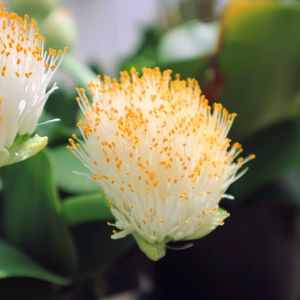 初めましてのお花 💚マユハケオモト💚 写真では見たことがあるけど、実物を見るのは初めてだから、本当に刷毛みたいで面白いお花ですね😃😊
