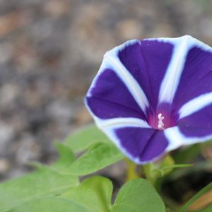 今日のお花「アサガオ」 昨年の零れ種から地面に咲いています ピンク🩷ブルー🩵もありましたが何故かこの濃い紫色