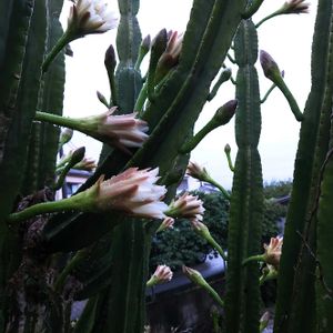 ご近所さん宅のサボテン🌵 ここ数年毎年こんなに沢山咲きます 許可とって撮影してますよ 早朝なのでちょっと暗く、小雨で完全に開花してません