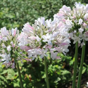 日射しの下では白く見えるけど、ほんのりピンク色が混じっているアガパンサス ガーデンクィーン。 ちょうどボンボリみたいになりましたね 💚💚💚