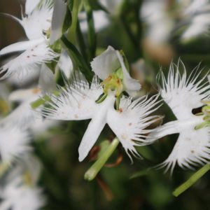 今日のお花 💚サギソウ💚 盛夏の頃に細い茎に3cm程の白い花を1~3輪咲く多年草。 湿地ランであるトキソウと共に山野草の代表です。