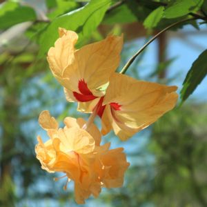 公園の緑のセンターで明るい黄色のお花が咲いていました。 イエローフラミンゴという名のハイビスカス🌺🌺 下向きのユニークな2段咲き🧡💛 見とれていたら汗だくになりました☀️😵💦 どこか涼しい所はないですか~?😥