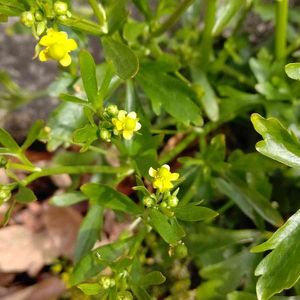 🏷日曜ビタミンカラー♪ 🏷幸せの黄色いお花 黄色い小さなタガラシ(田辛子)の花、5mm位の小さなお花です。 有毒です。 キンポウゲ科 キンポウゲ属