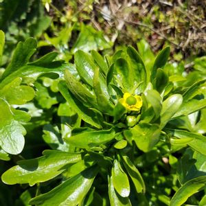 冬の水路に緑の葉っぱ🌿 タガラシですよ〜 そういえば、水路に大きく育ったタガラシに花が咲いていましたね😆 キンポウゲ科キンポウゲ属 このようにロゼットを形成して越冬するのだそうです。