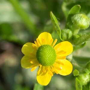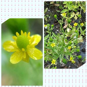 タガラシ、スズメノテッポウと一緒に… 田んぼに生えてる黄色い花🌼 花弁に光沢あり✨ 花後に花床が伸びて長楕円形に… キンポウゲ科キンポウゲ属