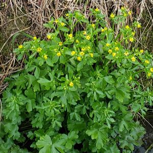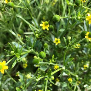 タガラシ (田辛し) 茎・葉・花に光沢が有ります。葉は腎円形で深く3裂し、裂片がさらに細かく裂け、根生葉は長い柄が有ります。 花径7~8㎜で、中央の緑の部分は多数の雌しべが集まったもので、花後膨らんで集合果になります 刺激性の「有毒成分」を含んでいるため噛むとヒリヒリとした辛味があり、水田に良く生えている事が名前の由来です。 今日は「毒草」を集めてみました。(◜◡◝)