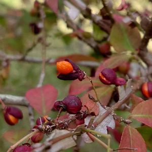 とあるお庭の秋 トベラの実 熟して来るとパカッと割れ中から赤い種子が顔をだす😜
