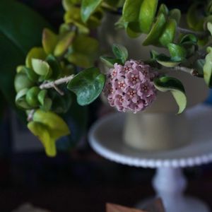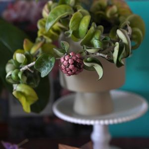 こんにちはー お久しぶりです 売り場の花たちもだいぶ秋冬チームになってきました 3年ほど育てているホヤ どうにも動きもなく、室内だとカイガラムシにやられるから外に吊って放置してましたら、待望のお花が咲いてました🤩🤩🤩 相変わらずカイガラムシは付いてるし、真夏の直射で葉も焼けてボロボロだけど。。。 お花可愛い😍 作り物みたいなぼんぼり 処分するつもりだったけど これは捨てられないなぁ