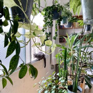 私の汚部屋にはシマエナガちゃんが住んでいます𓅫⸒⸒✨ 先日植え替えしたシンゴニウムやホヤたちと😊🍀 カルノーサ コンパクタは長くなりすぎて、ひとつは1m以上になってましたꉂ🤣w𐤔 4枚目のように花座もついてるのに植え替えしちゃったけど、咲いてくれるのかな~🌸✨