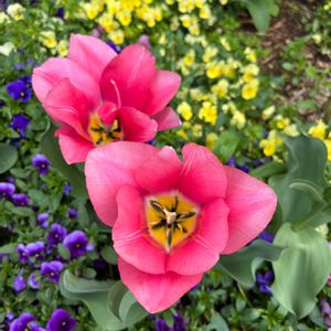 チューリップとビオラの花壇 上から見たら可愛い💕