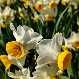 小さな花壇に規則正しく咲いている水仙の花 同じ方を向いてるの(@_@) 通る度に良い香りに包まれる🎶