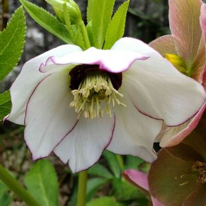 クリスマスローズ春霜 去年小さな苗でお迎えして、今年咲きました(^-^) タグの写真に写ってた通りの花です💕 白の花びらに紫の縁取り 中の紫の部分もクルクルしてて シベの変化も楽しい 想像してた以上にステキな花🎵