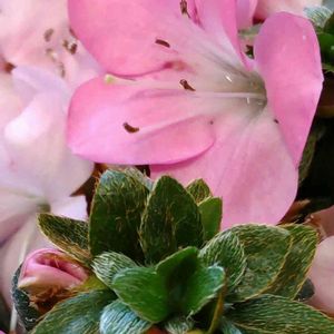 ミヤマキリシマツツジ桃源です 大きく写してるけど、お花も葉っぱも小さくて盆栽にしたら良いみたい💕 サツキとツツジの違い 開花時期、、、ツツジの方が早い 花の大きさ、、、ツツジは大ぶりで豪華 サツキは小ぶりで愛ら しい 葉の特徴、、、ツツジ大ぶりで柔らかい サツキ小ぶりでかため 新しい葉が出るタイミング、、、 ツツジ花~新葉 サツキ新葉~花 おしべの数、、、ツツジ5~10 サツキ5本 この特徴を見ると花も葉っぱも小さくて、おしべの数も5本 サツキのようですが、ツツジなんですね~ サツキもツツジも種類が多くて見分けがつきにくいですが、どれも違ってどれも可愛い💕