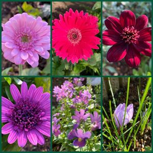 爽やかな朝です 秋は、花の色が濃いですね サフランの雌しべも収穫出来ました❣️ ガーベラ チョコレートコスモス オステオスペルマム ネメシア サフラン